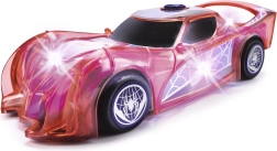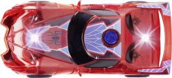 Das Superhelden‑Auto SPIDER‑MAN in charakteristischem Rot mit Spinnennetz‑Details besticht durch sein transluzentes Design und integrierte LED‑Lichter, die jedes Abenteuer erhellen. Der einfache Push‑and‑Go-Mechanismus (Friktionsantrieb) braucht nur einen leichten Schubs und das Auto startet nach vorn.
