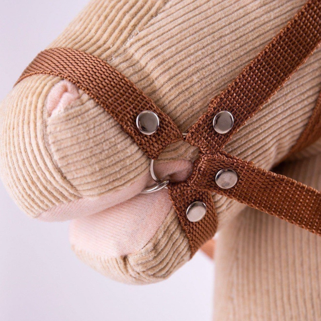 Das Kord-Steckenpferd ist das ideale Spielzeug für Kinder, die Bewegung lieben. Dieses Pferd verfügt über einen weichen Kopf aus Kordstoff, eine flauschige Mähne und praktische Zügel. Zwei Holzräder am Ende der Stange ermöglichen eine sanfte Fortbewegung auf ebenen Flächen, ohne Spuren zu hinterlassen.
