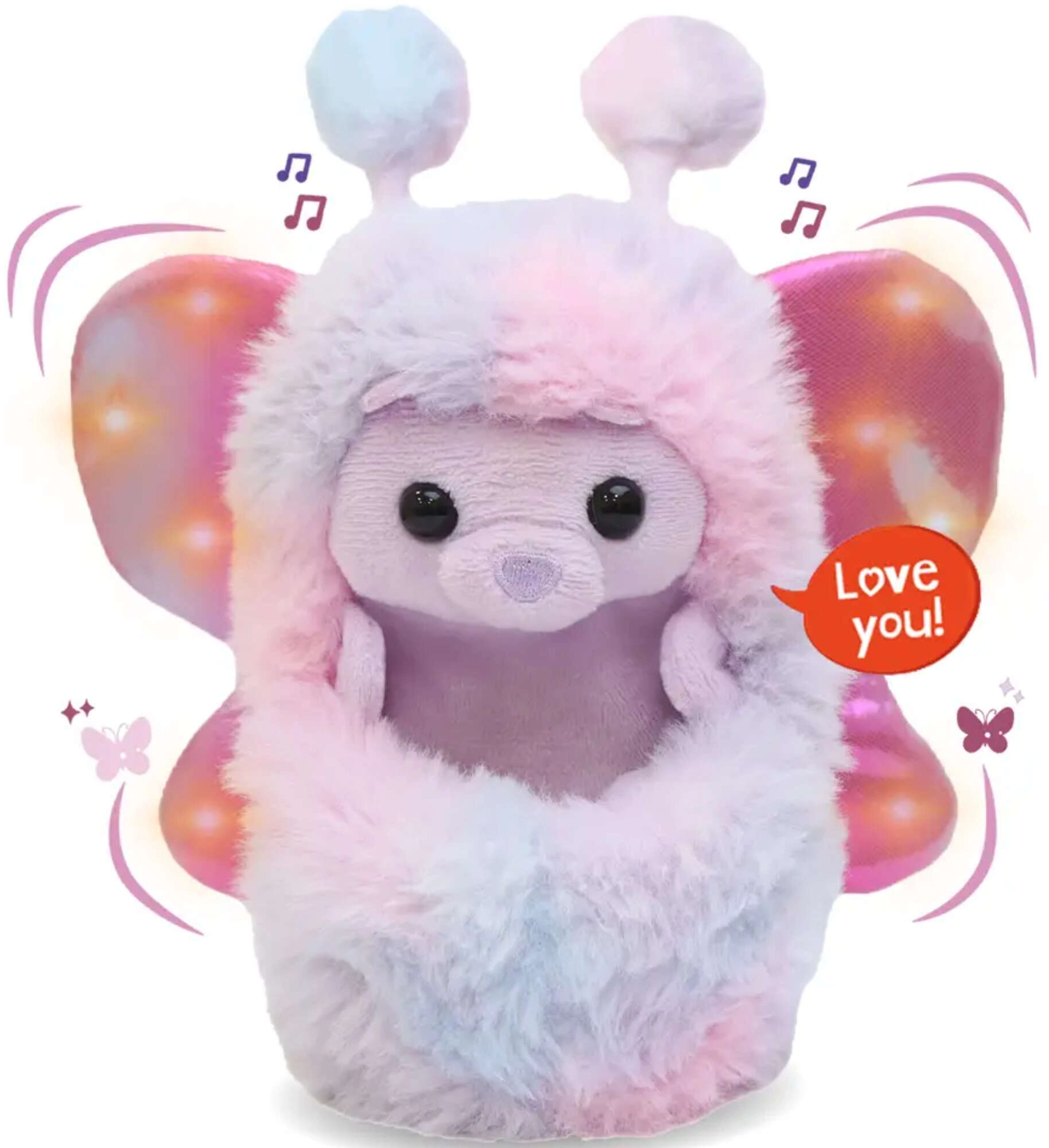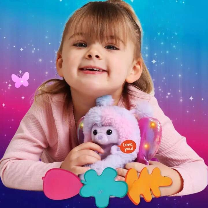 Bella ist ein interaktives Plüschtier, das auf Berührungen reagiert – drücken Sie sanft den Bauch, streicheln Sie ihn oder berühren Sie die Nase, und schon ertönen über 45 Geräusche: Er lacht, schickt Küsschen und sagt niedlich „I love you“ (auf Englisch). Dank der Höhe von 18 cm liegt er gut in der Hand und ist ideal zum Kuscheln vor dem Einschlafen.