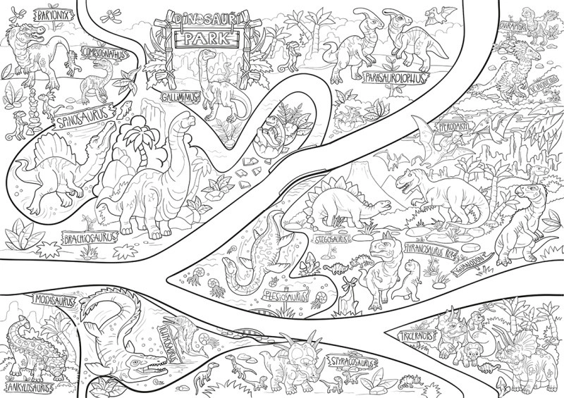 Entdecken Sie die Freude am kreativen Gestalten mit diesem großen Ausmalposter mit Dinosauriermotiv im Format 64 × 90 cm. Dank des starken 200 g/m²-Papiers eignet es sich hervorragend für Buntstifte, Wachsmalstifte und Wasserfarben. Beim Kauf aller 6 Ausmalposter-Typen lassen sie sich zu einem großen Bild verbinden, das durch einen Weg verknüpft ist.