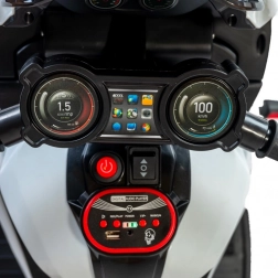 Das Motorrad ist mit LED-Scheinwerfern für eine attraktive Optik und bessere Sichtbarkeit sowie einem Multimedia-Panel mit Musik, Kinderliedern und Lernfunktionen ausgestattet. Dank einfacher Startfunktion per Knopfdruck und einer Taste für die Vorwärts-/Rückwärtsfahrt kommen auch kleinere Kinder bestens zurecht.