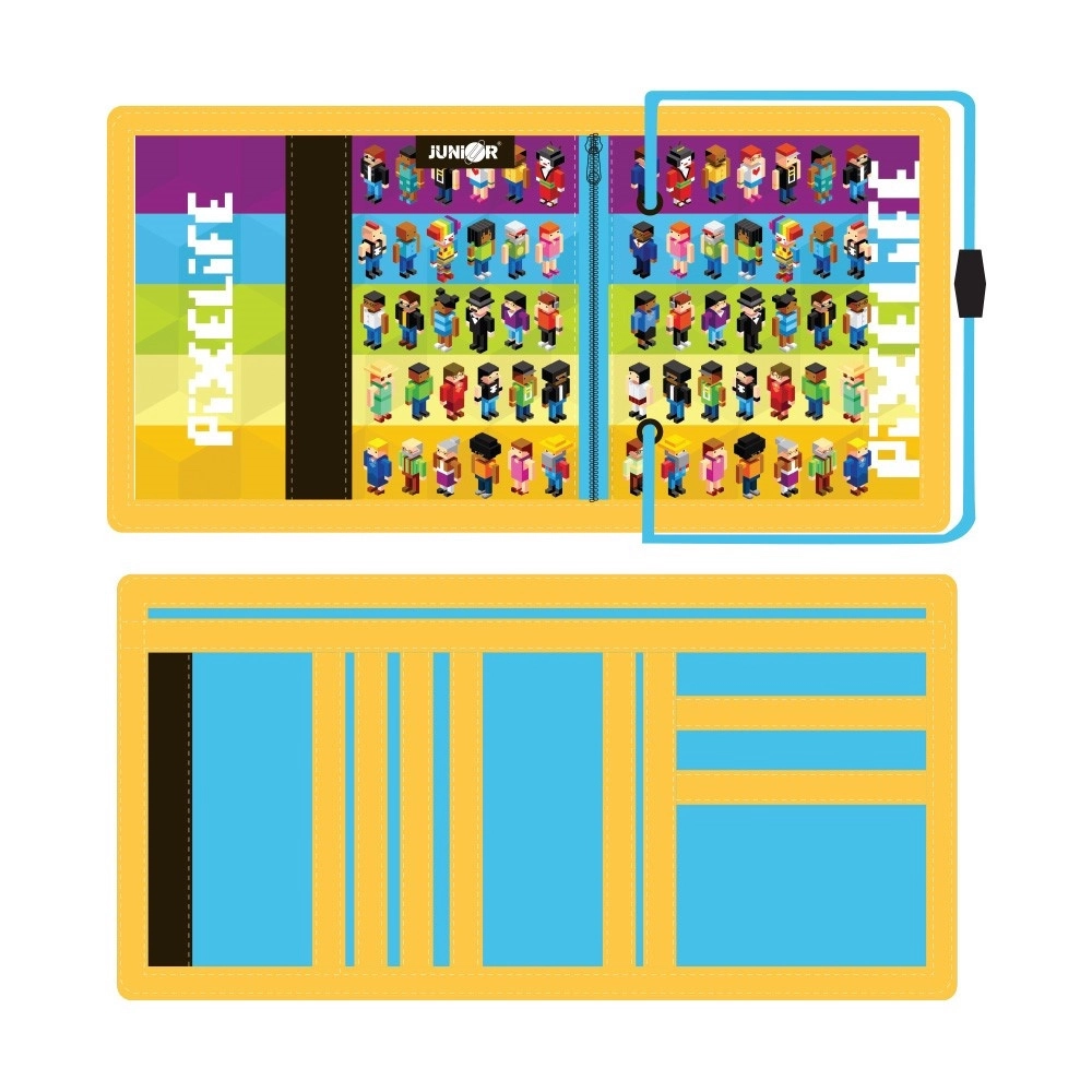 Die praktische Kinder-Geldbörse Pixelife aus robustem Textil bietet eine übersichtliche Aufteilung und eine sichere Aufbewahrung kleiner Dinge. Sie verfügt über ein großes Scheinfach, 6 kleinere Fächer, ein transparentes Ausweisfach sowie eine Rückentasche mit Reißverschluss. Inklusive Trageband für den Hals für bequemes Tragen.