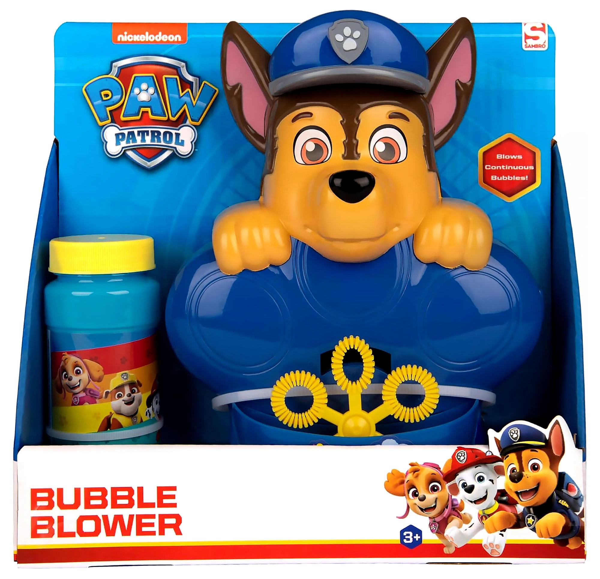 Die Figur von Chase begeistert Kinder. Das thematische Design fördert kreatives Spielen und macht die Seifenblasenmaschine zum tollen Geschenk für Fans.