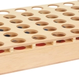 Dieses Holzspiel ist dank seines kompakten Designs ideal für Reisen. Die Spieler lassen abwechselnd rote und blaue Scheiben in die vertikalen Spalten fallen, mit dem Ziel, eine Reihe aus vier Scheiben derselben Farbe zu bilden. Dank der hochwertigen Holzausführung ist das Spiel nicht nur optisch ansprechend, sondern auch robust und langlebig.