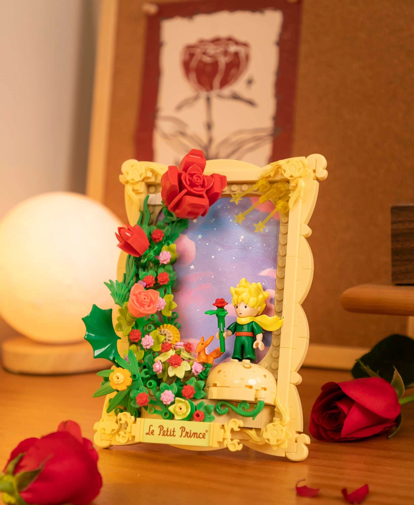 Dieses Design-Bauset überträgt die Poesie der zeitlosen Geschichte in eine originelle Dekoration. Sie bauen eine markante rote Rose mit fein modellierten Blütenblättern, einen eleganten Rahmen sowie einen Sockel mit der Aufschrift Le Petit Prince. Dank hochwertigem ABS-Kunststoff und präziser Passform ist der Aufbau fließend und das Ergebnis stabil – ideal für Regal, Schreibtisch oder Kinderzimmer.