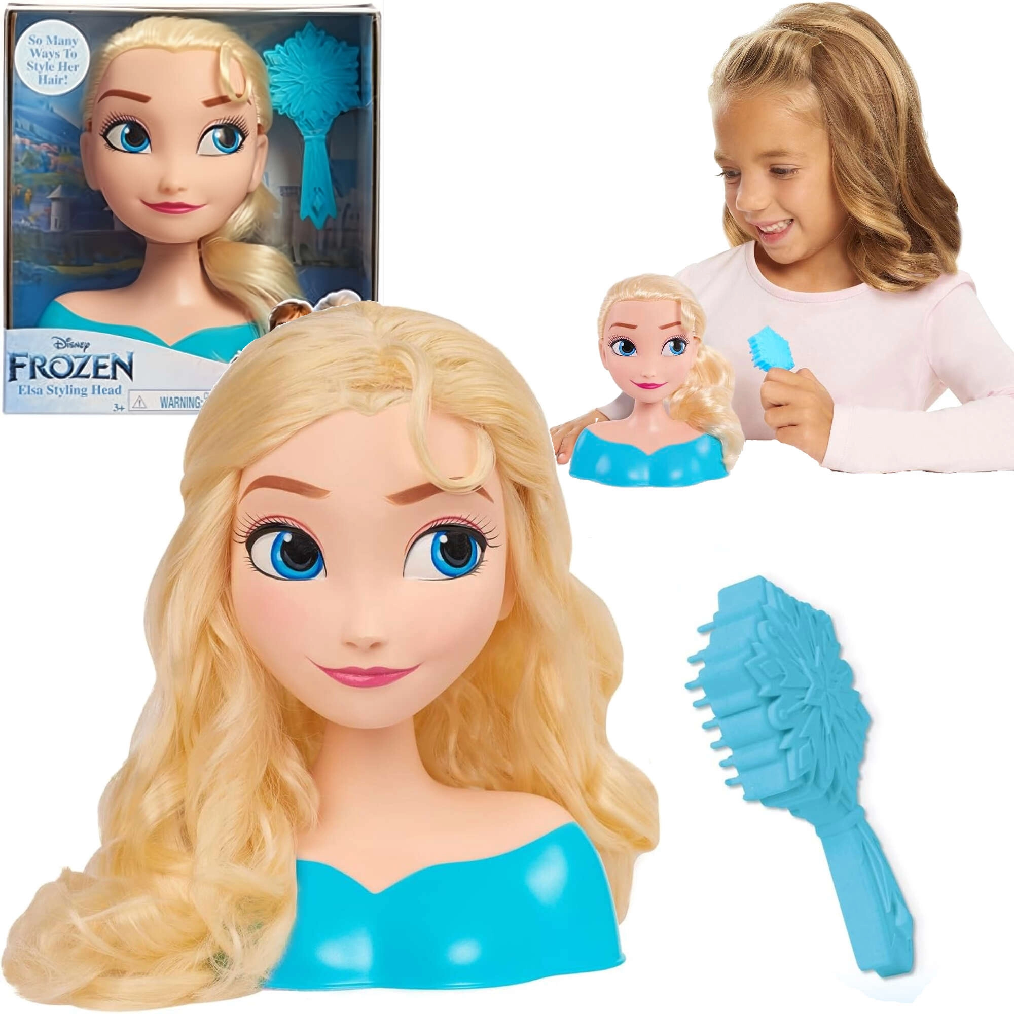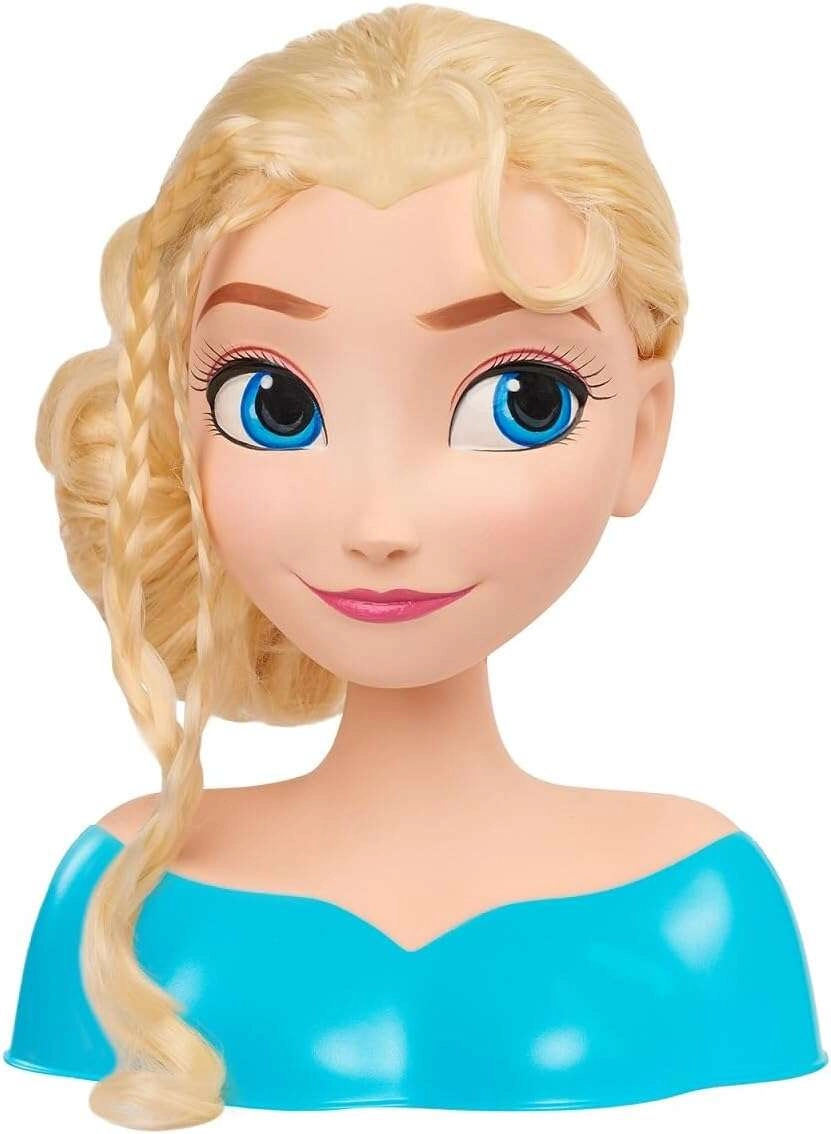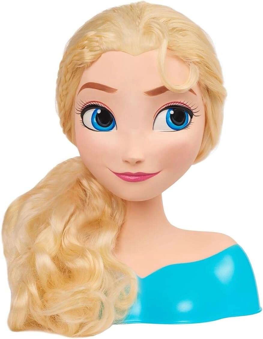 Entdecken Sie den zauberhaften Styling- und Frisierkopf mit der Figur DISNEY FROZEN Elsa. Lange, glänzende blonde Haare, große blaue Augen und ein stabiler Büstenständer laden zu kreativem Spiel ein. Inklusive Bürste in Schneeflockenform für leichtes Kämmen und das Gestalten von Frisuren. Ideales Spielzeug für Kinder ab 3 Jahren, das Feinmotorik, Fantasie und Sinn für Ästhetik fördert.
