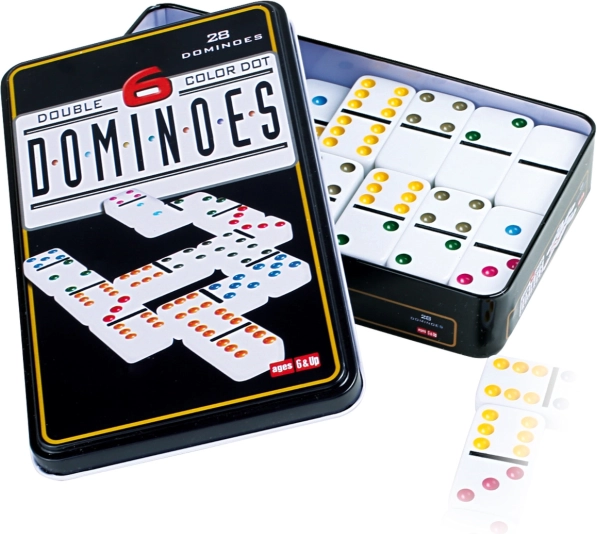 Diese Domino-Steine sind größer als gewöhnlich für einfachere Handhabung und bieten eine großartige Möglichkeit zur Verbesserung der Geschicklichkeit, Zusammenarbeit und Konzentration bei Kindern. Das Spiel kommt in einer attraktiven Metallbox, die Tragbarkeit und Haltbarkeit gewährleistet. Bunte Punkte verleihen jedem Spiel eine lustige Note und motivieren Kinder, schnell passende Paare zu finden.