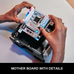 Entdecke ein originelles Bauset, das einen modernen Gaming-Desktop detailgetreu nachbildet. Jedes Modul – von der Grafikkarte über Netzteil und SSD-Halter bis hin zu Mainboard und DDR-Speicher – wird separat zusammengesetzt, sodass du ein realistisches Gefühl eines PC-„Upgrades“ erlebst. Präziser Pad-Druck auf den Teilen sorgt für dauerhaft schönes Aussehen ohne Aufkleben von Labels.