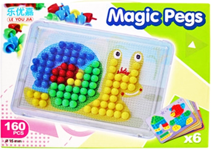 Das Set bietet tollen Spaß zu Hause und im Kindergarten. Die stabile Grundplatte hält die Stifte an Ort und Stelle und 6 Bildvorlagen sorgen für schnelle Inspiration. Alles besteht aus robustem Material, das dem täglichen Gebrauch standhält.