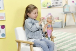 Die langen blonden Haare mit farbigen Strähnen können Sie mit dem beiliegenden Haarreif und dem rosa Kamm schmücken und frisieren. Das Spiel mit der Puppe fördert Vorstellungskraft, Empathie und Verantwortungsbewusstsein – das ideale Geschenk für kleine Meerjungfrauen.