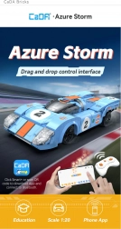 Das Bausteinset CaDA AZURE STORM vereint kreatives Bauen mit schneller RC-Fahrt. Nach dem Zusammenbau erhalten Sie einen detailreichen Rennwagen mit aerodynamischer Form, transparentem Cockpit und sportlichen Aufklebern – bereit für actionreiche Rennen zu Hause und draußen. Die Steuerung ist dank 2,4 GHz und Bluetooth intuitiv und stabil.