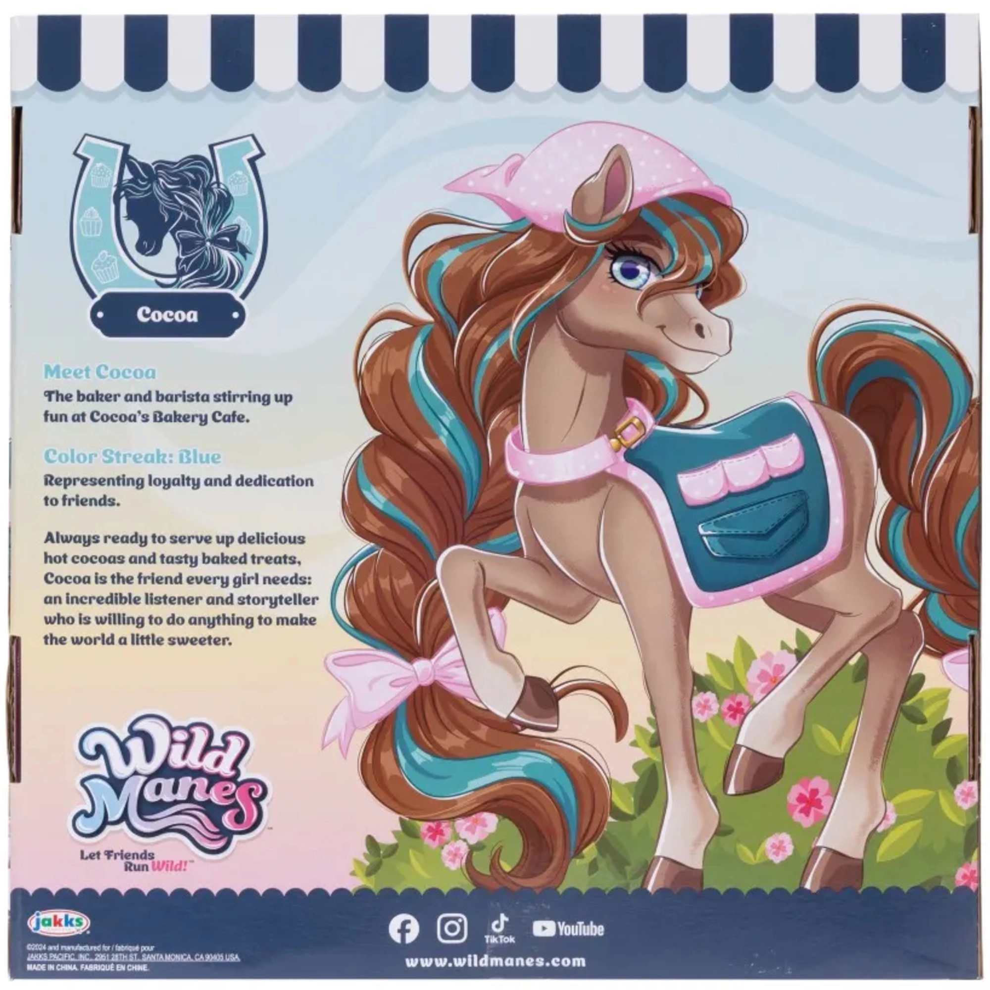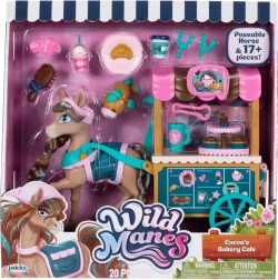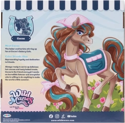 Das Pony Cocoa aus der beliebten Serie WILD MANES kommt mit dem detailreichen Wagen Bakery Café, in dem es Getränke und Gebäck servieren kann. Die Figur hat eine aufwendig gestaltete Mähne mit Zöpfen, ausdrucksstarke Augen und trägt eine stylische Schürze – bereit für jedes Abenteuer. Dank hufeisenförmiger Clips kann Cocoa Zubehör halten und verschiedene Szenen spielen.