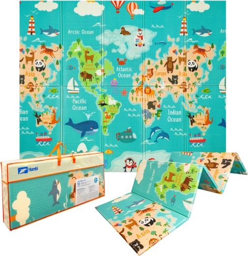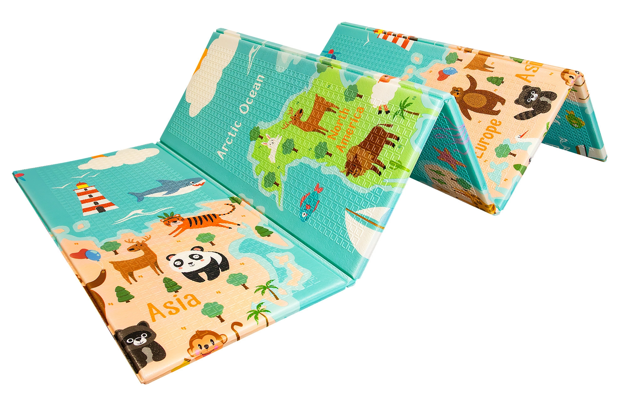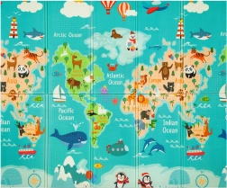 Das Design fördert spielerisches Lernen: Die Weltkarte mit Ozeanen, Kontinenten und Tieren weckt kindliche Neugier auf Geografie, während Straßen mit Autos und Gebäuden Fantasie und kreatives Spielen anregen. Die Matte ist wasserabweisend und hygienisch – einfach mit einem feuchten Tuch abwischen, sie bindet keinen Staub und ist auch für Allergiker geeignet.