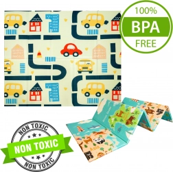Premium XPE-Schaum sorgt für hervorragende Federung, Wärmeisolierung gegen kalte Böden und lange Lebensdauer – ohne Geruch und ohne toxische Stoffe. Die Matte ist leicht, faltbar und beidseitig, sodass Sie sie einfach transportieren, verstauen und dem aktuellen Spiel anpassen können. Die rutschhemmende Textur unterstützt sicheres Krabbeln und die ersten Schritte und stimuliert sanft die sensorische Wahrnehmung.