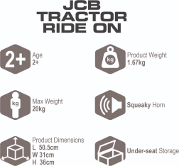 Laufrad JCB Fastrac begeistert kleine Fans von Baumaschinen mit seinem realistischen Look und der robusten Ausführung. Dank des Fußantriebs trainieren Kinder Balance und Koordination, während breite Räder und eine stabile Konstruktion für eine sichere Fahrt sorgen. Ein praktisches Staufach unter dem Sitz und eine Hupe machen das Fahren noch unterhaltsamer.