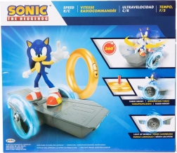 Entdecke Geschwindigkeit und Stil mit SONIC. Im Set enthalten ist eine ca. 15 cm große abnehmbare Figur auf einem futuristischen Fahrzeug mit zwei großen transparenten Rädern. Die Steuerung erfolgt über den ikonischen goldenen Ring, der Antrieb und Lichteffekte der Räder aktiviert.