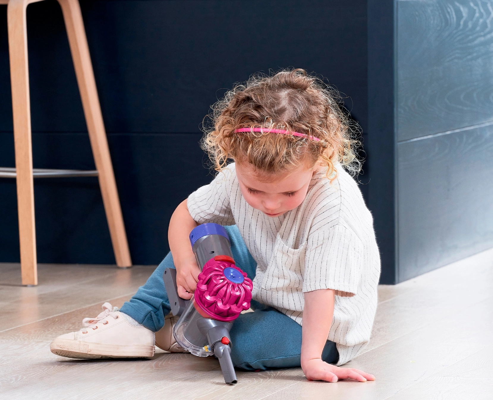 Schenken Sie Kindern die Freude am Nachahmen der Erwachsenen mit dem ikonischen Kinderstaubsauger CASDON DYSON. Dieser leichte und sichere Stielstaubsauger in Rosa-Grau bietet einen authentischen Look, realistische Geräusche und eine echte, sanfte Saugfunktion für kleine, leichte Partikel wie Papierkonfetti oder Styroporkügelchen.