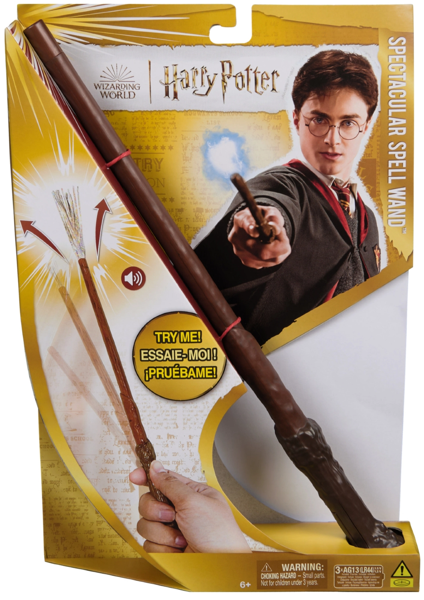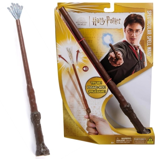 Lass dich von der magischen Atmosphäre der Filmreihe HARRY POTTER verzaubern und probiere den realistischen Zauberstab Spectacular Spell aus. Der Stab wird durch Handbewegung aktiviert, was jedem Zauberspruch den richtigen Effekt verleiht. Nach dem Ausführen des Zaubers erscheinen am Stabende silberne Streifen, die magisches Licht imitieren, und du hörst einen kurzen Klang.