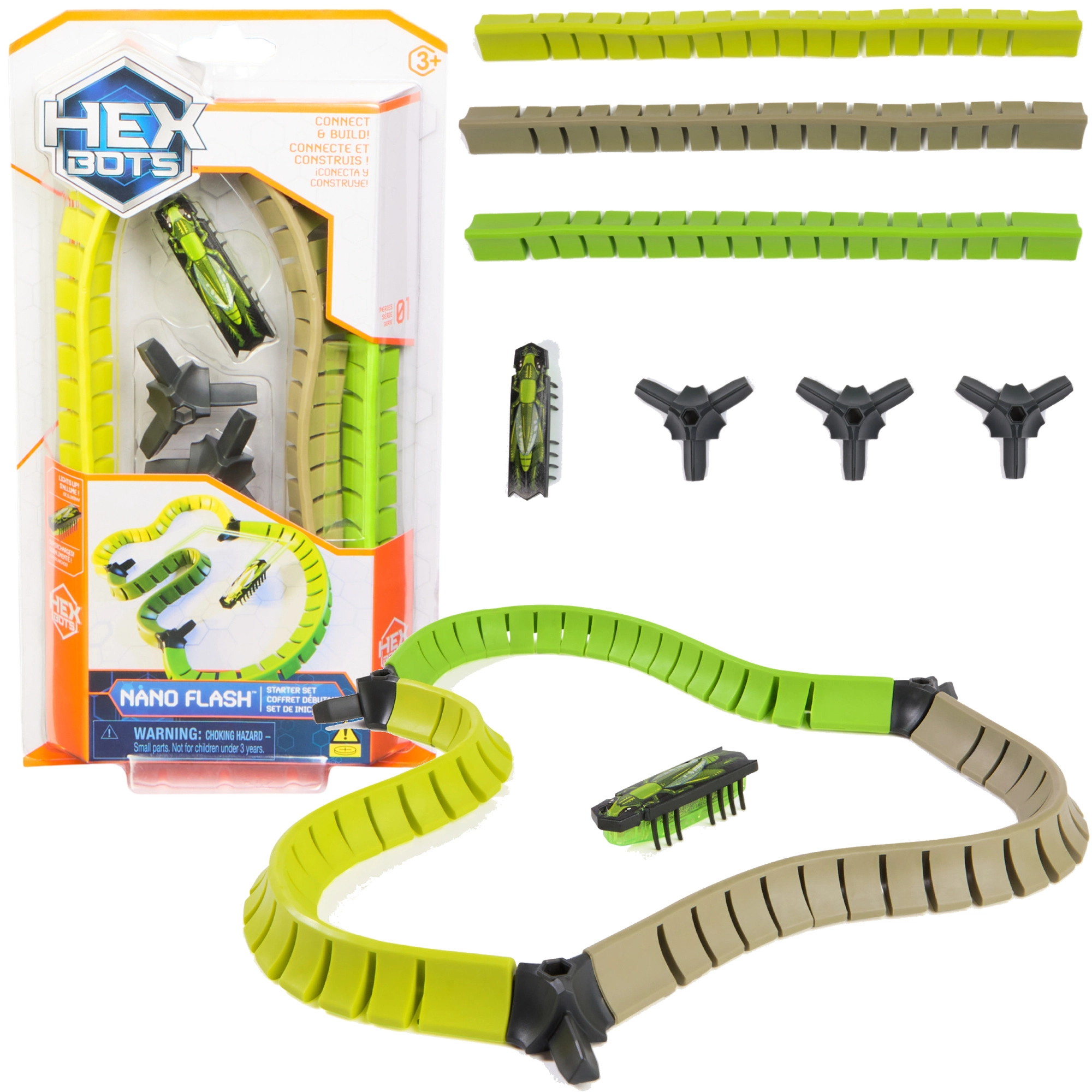 Das HEXBUG NANO FLASH Starter-Set bringt einen schnellen Mikro-Roboter in Käferform und eine modulare Strecke, die Sie leicht in verschiedene Formen zusammensetzen können. Dank der Vibrationen bewegt sich der Käfer selbstständig, blinkt mit blauem Licht und zittert realistisch wie ein echtes Insekt – perfekt für Spaß und Entdecken.
