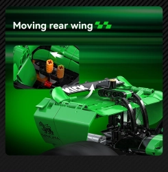 Alle Teile sind werkseitig bedruckt für eine lange Lebensdauer der Details. Wählen Sie die Fahrer-Version durch Tauschen weniger Steine: Nummer 24 (Zhou) oder 77 (Bottas).