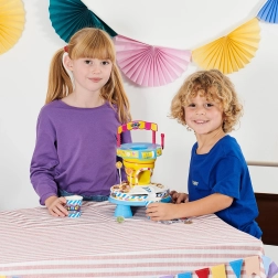 Ein großer Trichter, eine Handkurbel und eine Rinne zum Auskippen in die Becher machen den Betrieb der Konditorei zu einem reizvollen Geschicklichkeitsspiel, das die Feinmotorik trainiert.