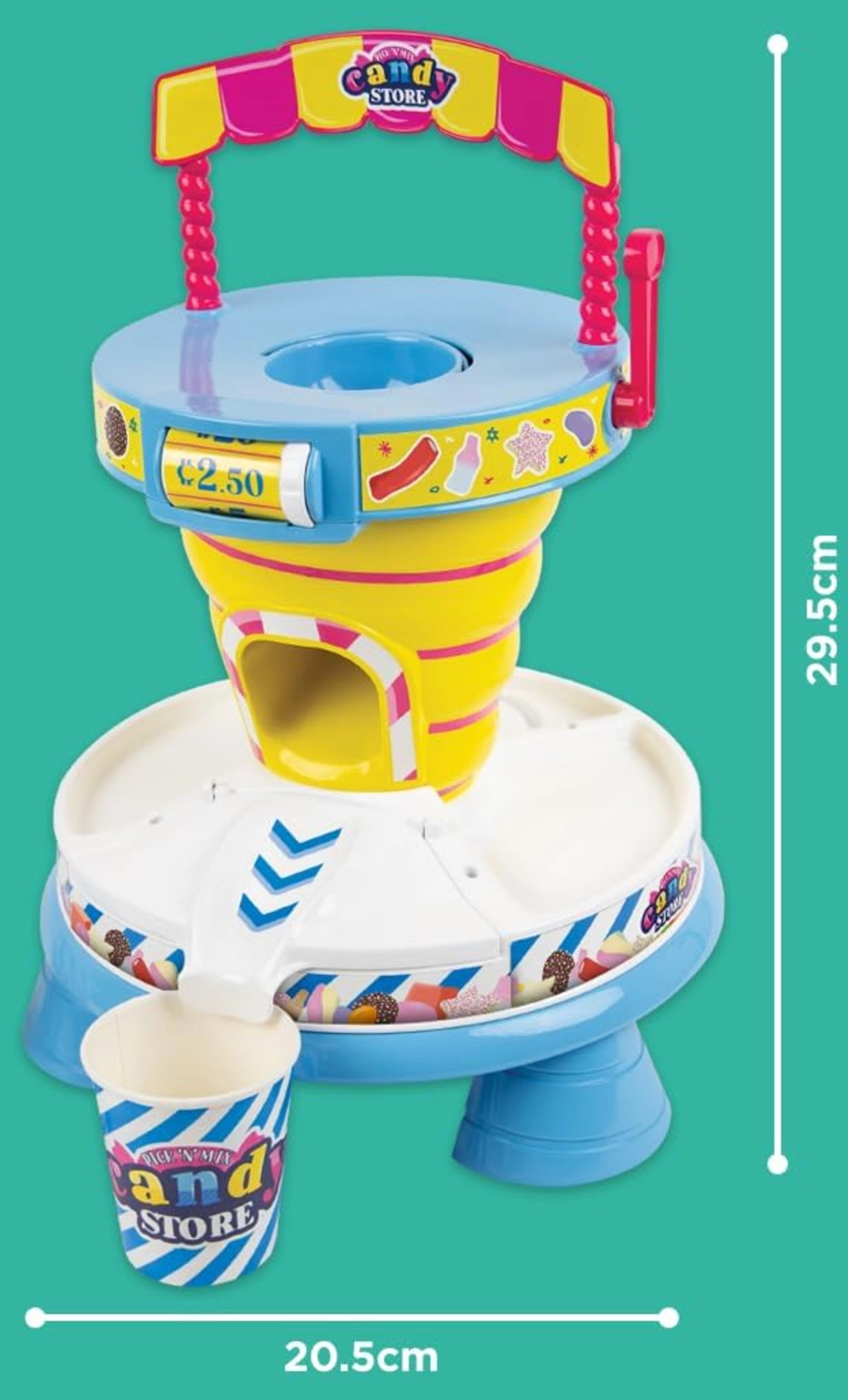 Gestalte deine eigene süße Ecke mit diesem interaktiven Set der Marke CASDON. Der bunte Tresen mit Spender, drehbarem Preiskreisel, zwei Bechern, Schaufel und Spielgeld fördert Rollenspiel, die Entwicklung der Feinmotorik sowie grundlegende Rechenfertigkeiten. Eine tolle Wahl für Kinder, die Kaufladen-Spiele und kreatives Servieren von Leckereien lieben.