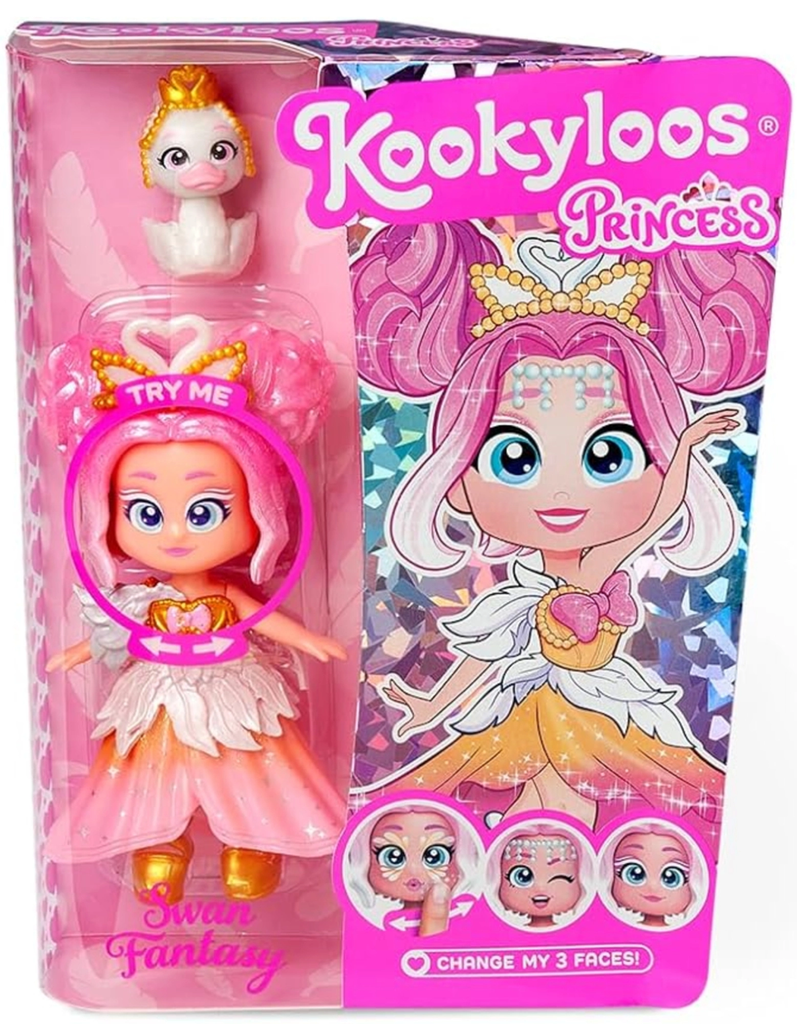 Dank eines cleveren Mechanismus wechselt diese Figur ihren Look mit nur einem Klick – vom Lächeln über einen verträumten Blick bis hin zu einer überraschten Mimik. Outfits und Accessoires sind unter KookyLoos Figuren kompatibel, sodass du endlose Style-Kombinationen erstellen kannst.