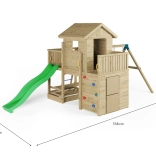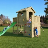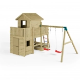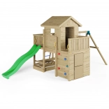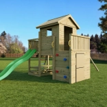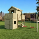 Der Spielplatz FUNGOO Multifort KDI bringt Kindern eine bunte Welt aus Bewegung und Fantasie direkt in Ihren Garten. Die stabile Holzkonstruktion mit Häuschen und Dach bietet Schatten und Rückzugsort, während Rutsche, Kletterwand und Doppelschaukel täglich zum Spielen einladen. Die KDI-Druckimprägnierung erhöht die Widerstandsfähigkeit des Holzes gegen Feuchtigkeit und Witterung.