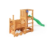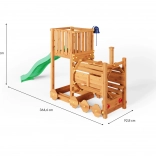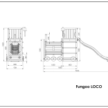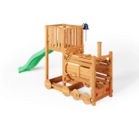Der Spielplatz FUNGOO Loco ist als Lokomotive mit Tunnel gestaltet und lädt zum Durchkriechen, Verstecken und zum Rollenspiel als Lokführer ein. Die lange Wellenrutsche mit 2,2 m sorgt für viele fröhliche Fahrten, während die Glocke die kindliche Vorstellungskraft und interaktives Spiel unterstützt. Die Konstruktion aus hochwertigem, imprägniertem Holz ist wetterbeständig und sicher im Boden verankert.