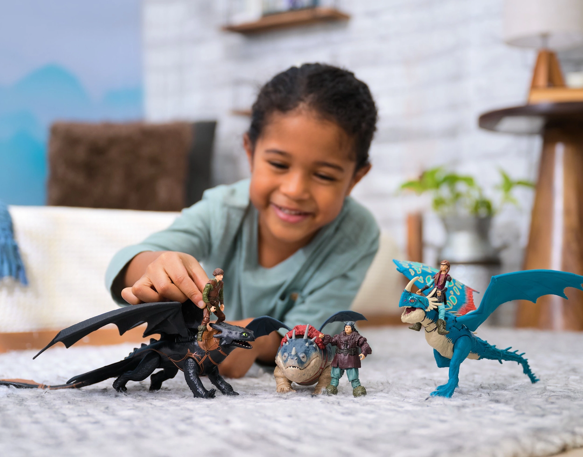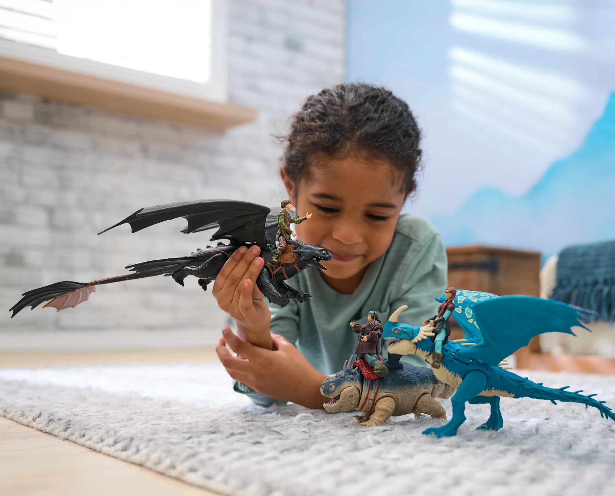 Das beliebte Set aus dem DREAMWORKS-Dragons-Universum bietet eine filmgetreue Ausführung mit Fokus auf authentische Details – von der „Schuppen“-Textur bis zum geformten Sattel für die Reiterin. Dank Gelenkverbindungen können die Flügel des Drachen zum „Flug“ ausgeklappt, Beine und Schwanz positioniert und bei der Astrid-Figur die Arme für Actionposen angepasst werden.