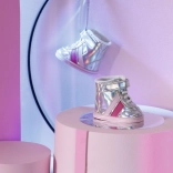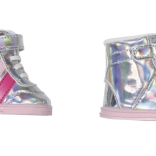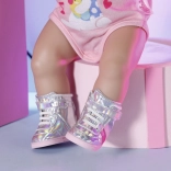 Schnürschuhe mit holografischem Effekt und rosa Details sind ein Trend in der Puppenmode.