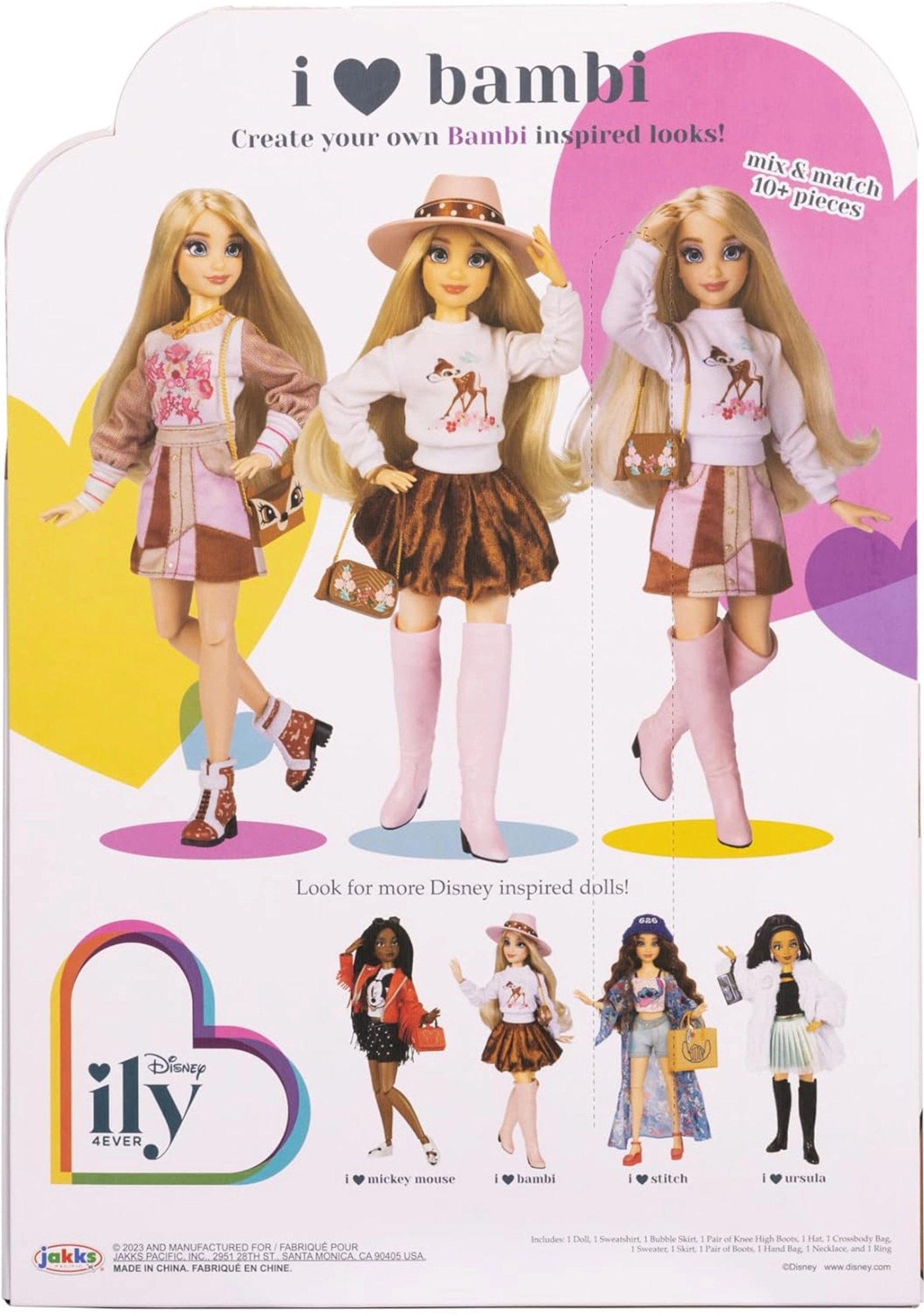 Entdecken Sie eine moderne Puppe, die premium Verarbeitung, detailreiche Accessoires und vielfältige Styling-Möglichkeiten vereint. Zwei vollwertige Outfits in sanften Naturtönen, inspiriert von Bambi, ermöglichen unzählige Looks – vom lässigen City-Style bis zur romantischen Wald-Ästhetik.