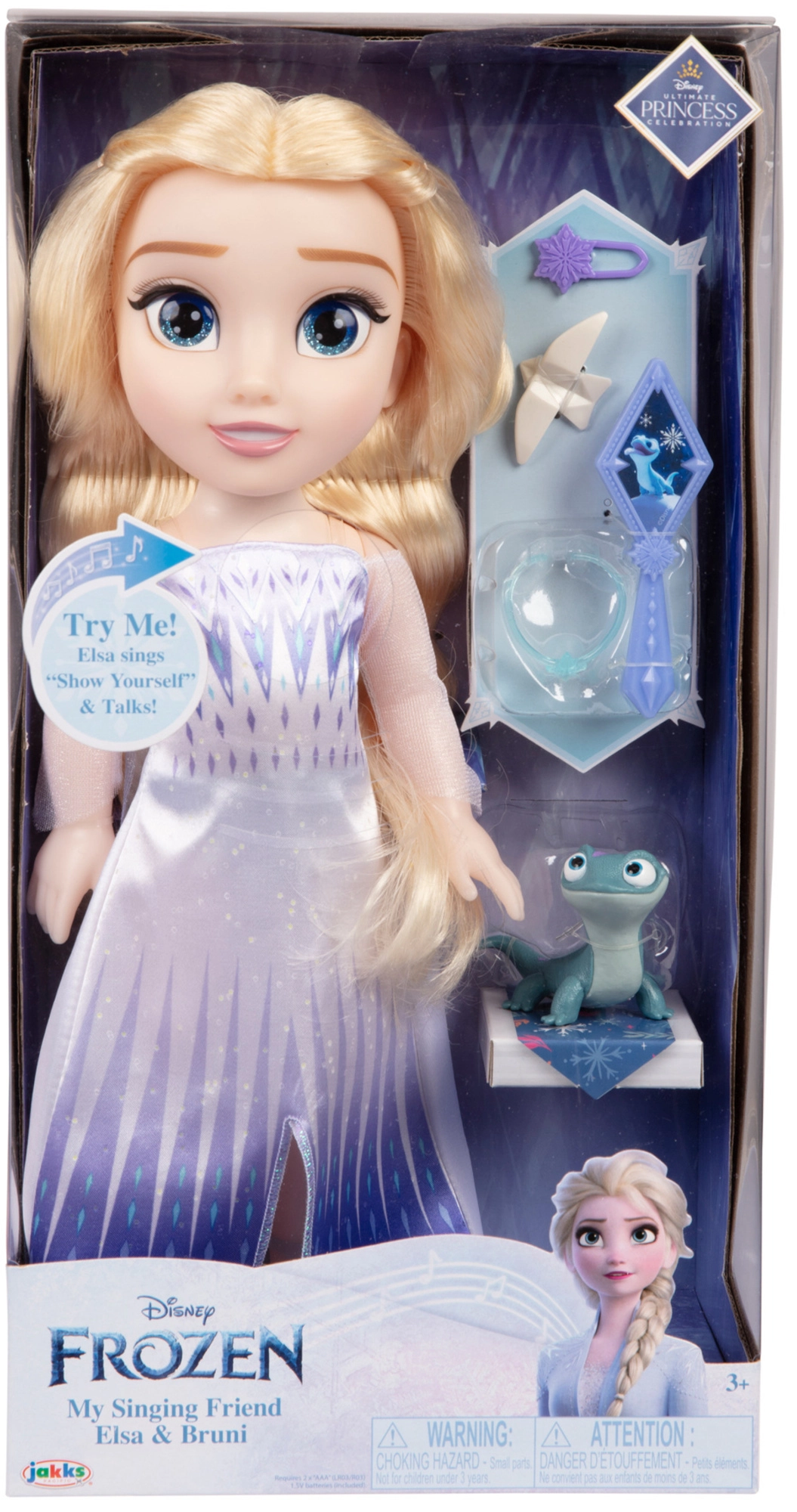 Die Elsa-Puppe der Marke Jakks Pacific bringt Kindern die beliebte Heldin aus Frozen – Die Eiskönigin nach Hause. Dank eines interaktiven Knopfes am Mieder singt Elsa einen Teil des Liedes „Show Yourself“ und regt Kinder zum Rollenspiel, Singen und Erfinden eigener Geschichten an. Glitzernde Augen und das wunderschöne Kleid aus dem zweiten Film verleihen der Puppe Charme und einen authentischen Look.