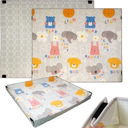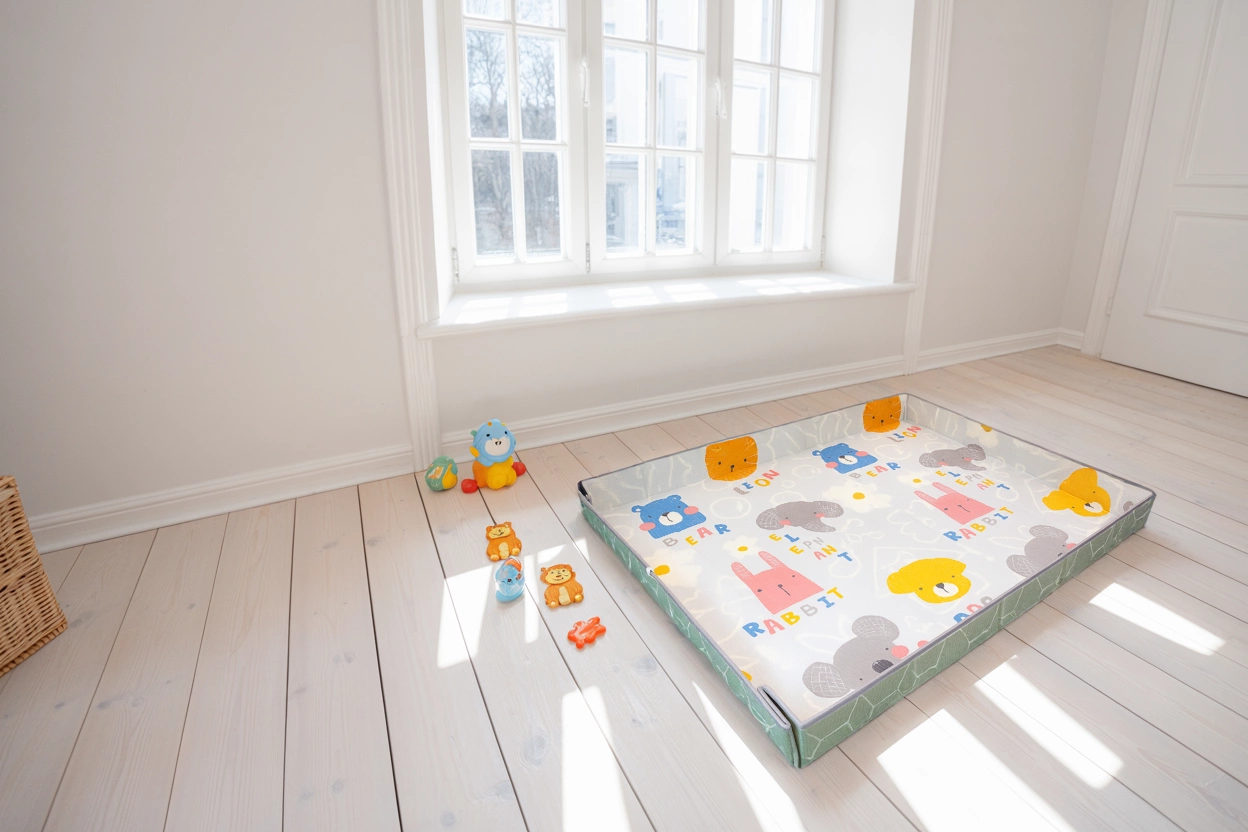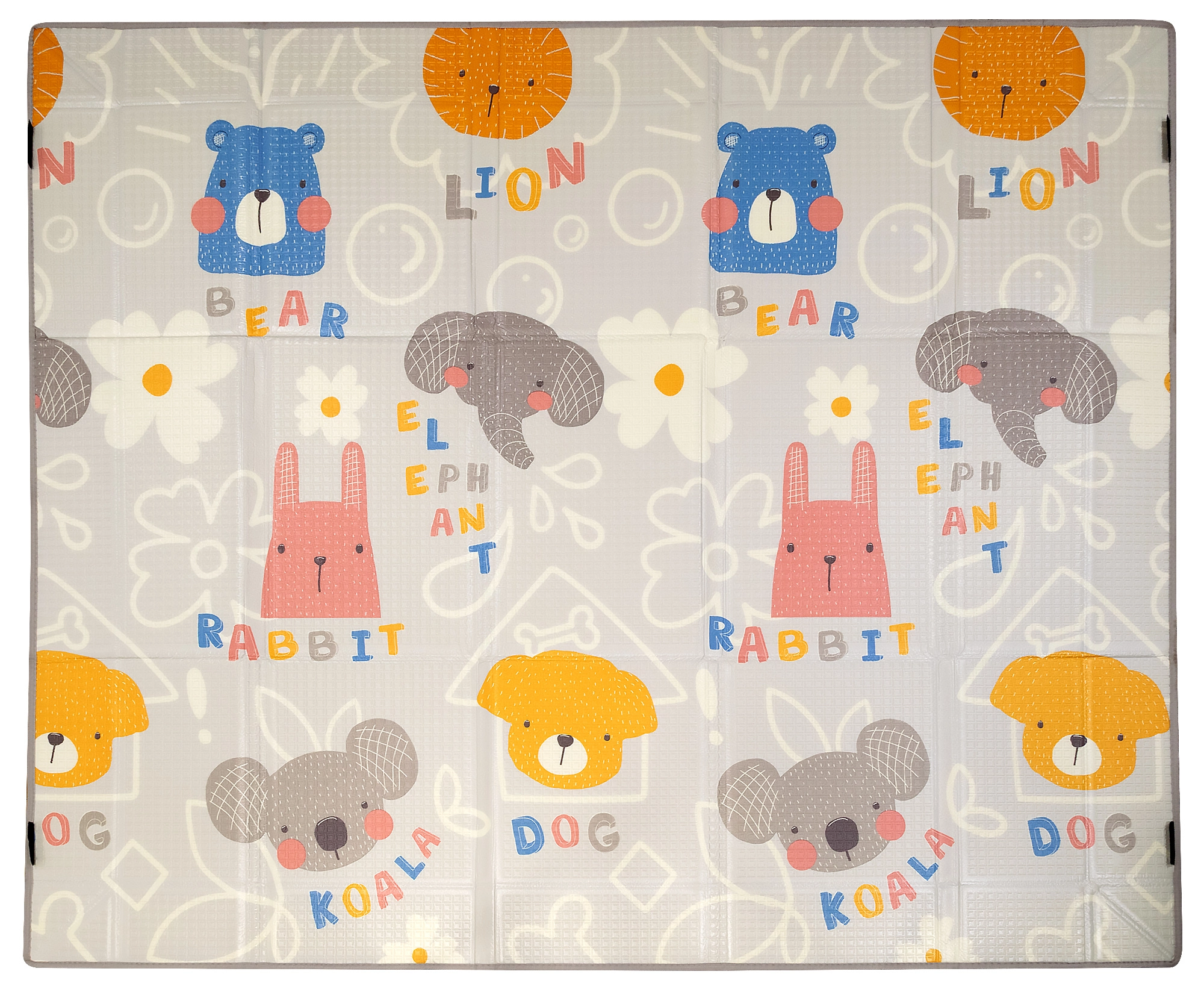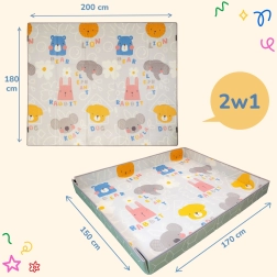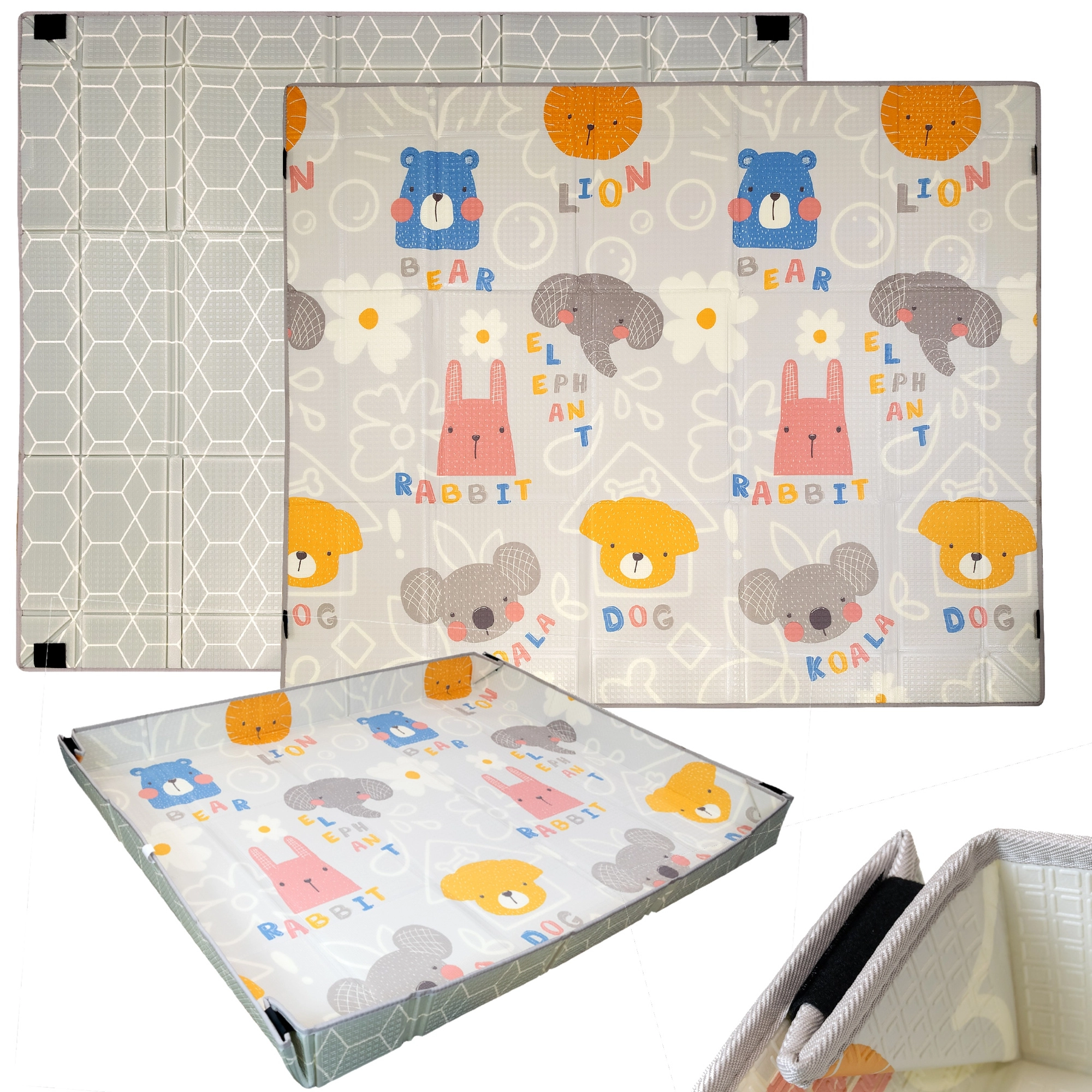 Entdecken Sie die vielseitige HUMBI 2-in-1-Matte, die mit Ihrem Kind mitwächst. Von den ersten Lebenstagen an bietet sie weiche Federung, Wärmeisolierung gegen kalte Böden und eine rutschfeste Oberfläche für sichere Krabbel- und Gehversuche. Dank des beidseitigen Designs vereint sie spielerische Tiermotive mit englischen Bezeichnungen und dezente geometrische Muster für ein ruhiges Ambiente.