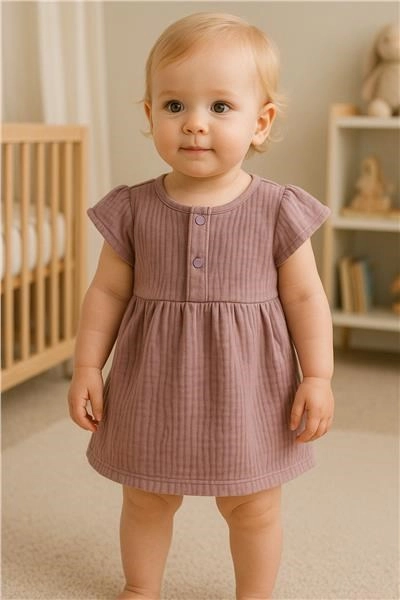 Sommerliches Musselinkleidchen von New Baby in Lavendel ist ideal für warme Tage. Fein gewebter, atmungsaktiver Musselin sorgt für Luftzirkulation und verringert das Risiko einer Überhitzung, sodass das Baby den ganzen Tag über bequem bleibt. Der A-Linien-Schnitt mit gerafftem Röckchen ist nicht nur niedlich, sondern auch bequem für freie Bewegungen.