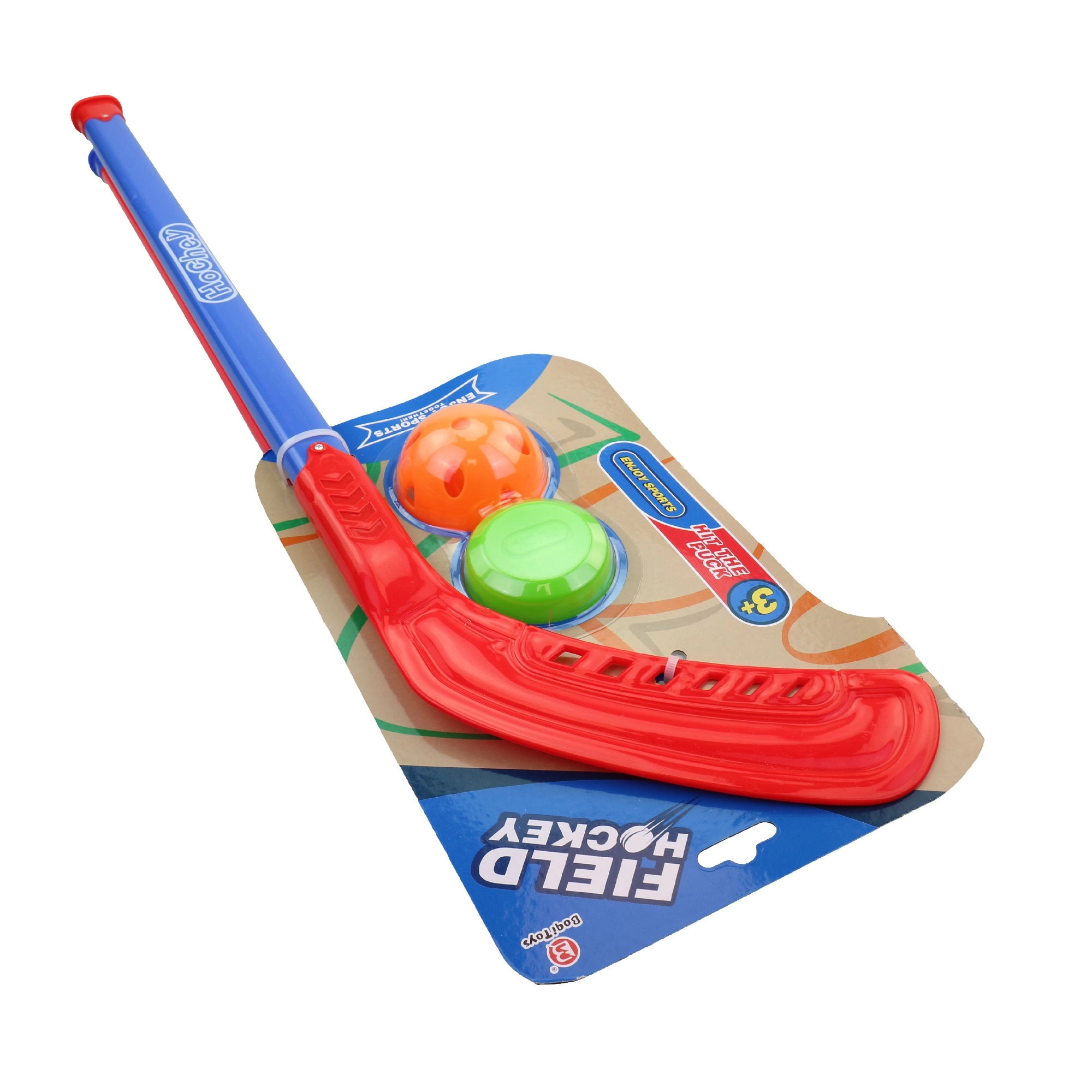 Dieses Eishockey-Set für Kinder enthält einen Schläger, einen Ball und einen Puck, sodass kleine Spieler verschiedene Spielarten ausprobieren können. Leichter und strapazierfähiger Kunststoff ist ideal für die ersten Schritte in der Welt des Hockeys sowie für sicheres Spielen zu Hause, im Garten oder auf dem Spielplatz.