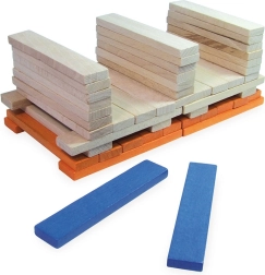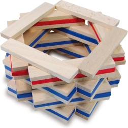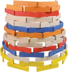 Das Set enthält 100 stabile, glatte Plättchen in Natur- und kräftigen Farben – ideal für Türme, Häuschen und originelle Konstruktionen.