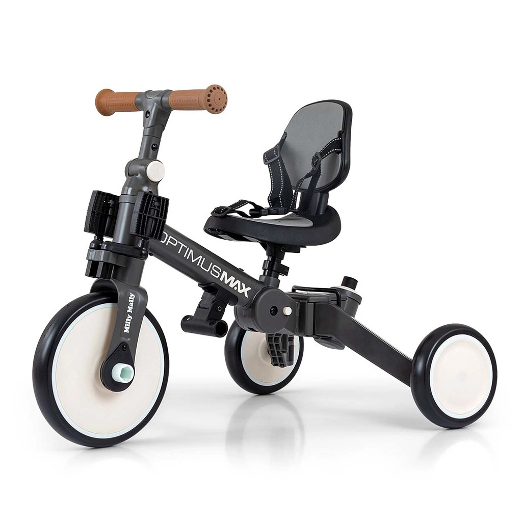 Optimus Max ist eine clevere 5-in-1-Lösung: von den ersten Fahrten mit elterlicher Unterstützung bis zum eigenständigen Laufrad. Dank des Stahlrahmens, der Schaumreifen und des Lenkanschlags bietet er Stabilität, Kontrolle und Sicherheit. Die kompakte klappbare Konstruktion erleichtert Transport und Aufbewahrung.