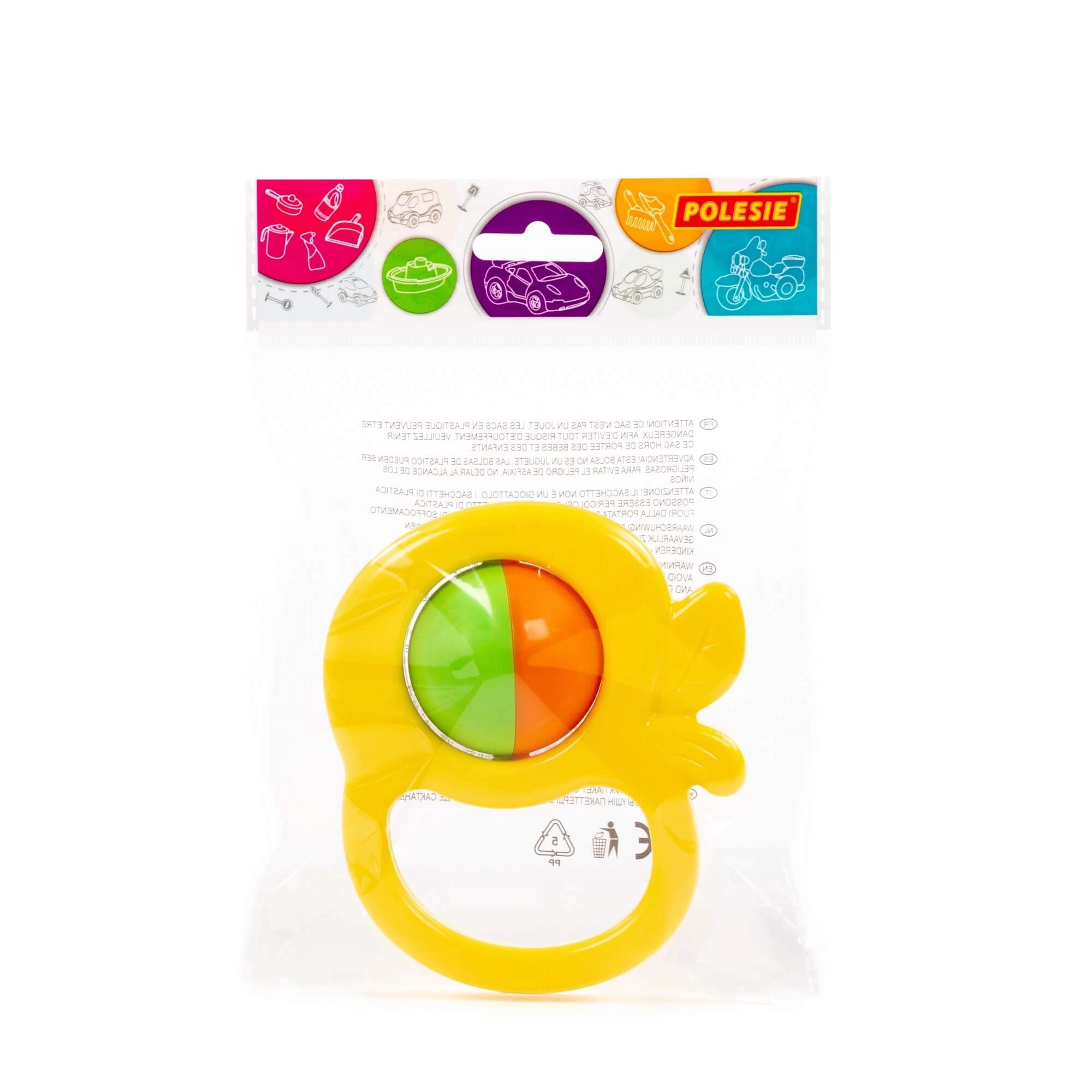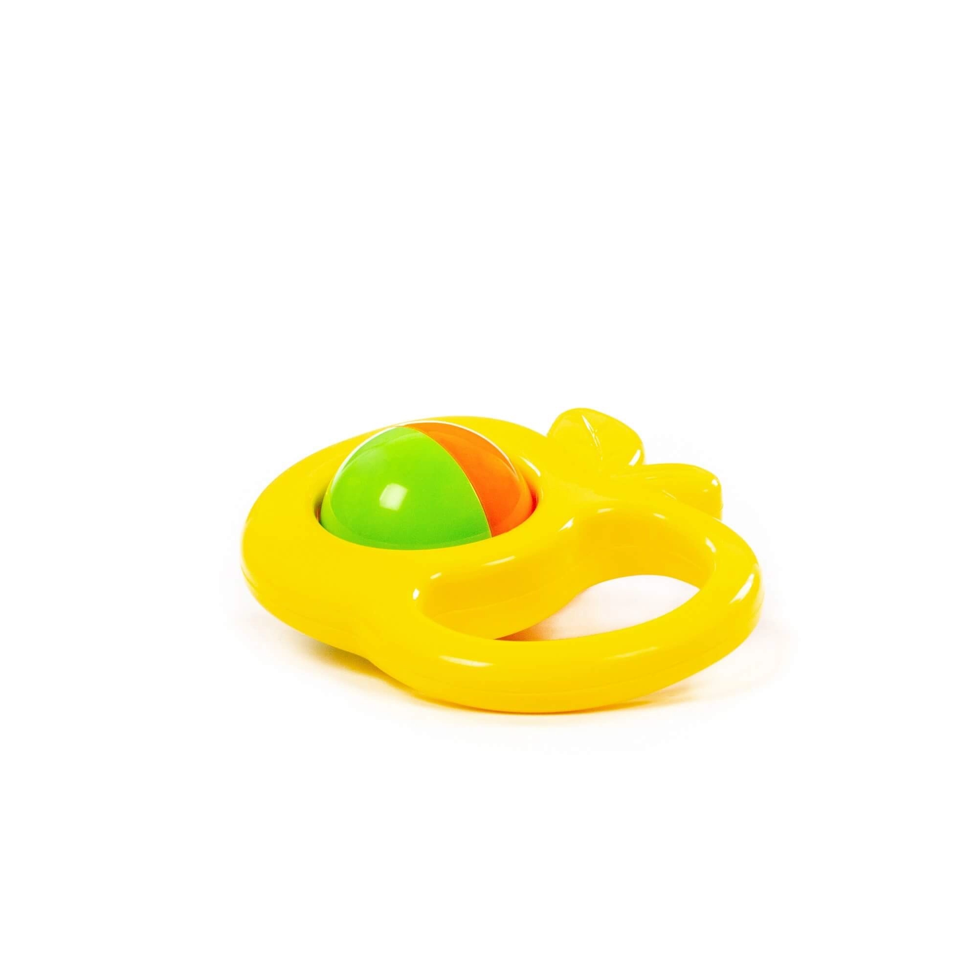 Die zweifarbige Kugel im Inneren dreht sich beim Bewegen und rasselt, was die auditive und visuelle Stimulation fördert.
