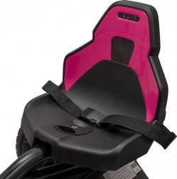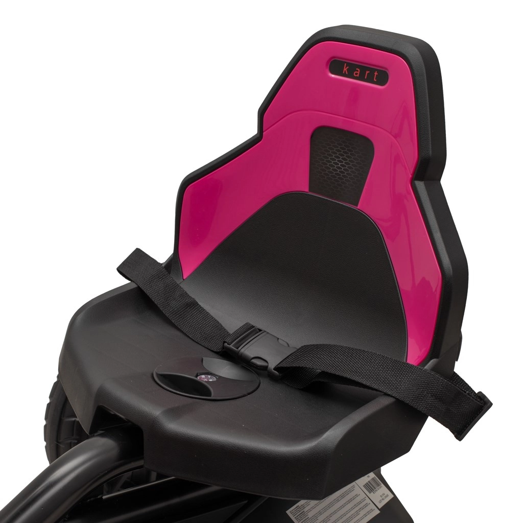 Der leichte, aber robuste Metallrahmen und die Kunststoffverkleidungen im attraktiven Stil sind pflegeleicht. Der verstellbare Sitz wächst mit dem Kind mit, und die vollständig abgedeckte Kette schützt kleine Finger. Das sportliche Lenkrad vermittelt ein realistisches Fahrerlebnis und fördert Motorik und Koordination.