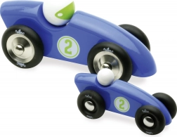Dieses elegante blaue Holzrennauto vereint hochwertige Handwerkskunst mit dem ikonischen Stil der Marke VILAC. Die gummierten Metallräder sorgen für leisen und gleichmäßigen Lauf auf verschiedenen Oberflächen, und die widerstandsfähige lackierte Oberfläche schützt das Spielzeug vor Kratzern.