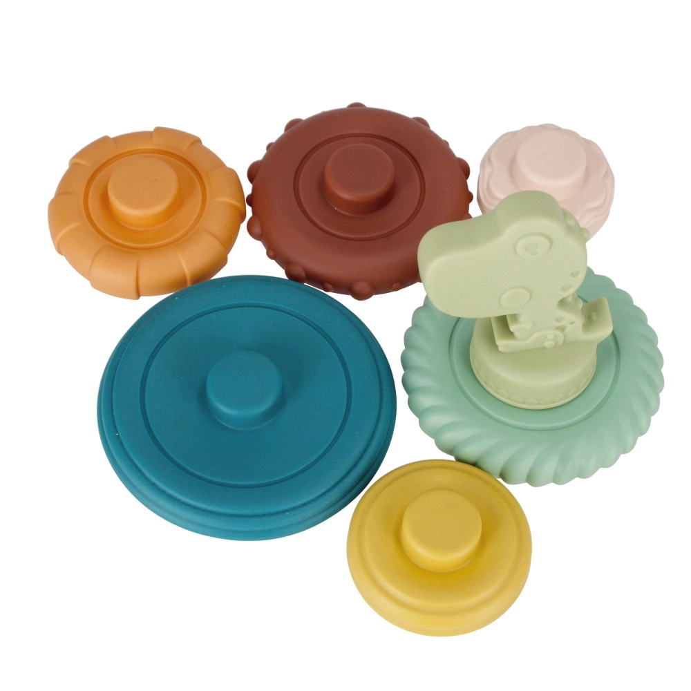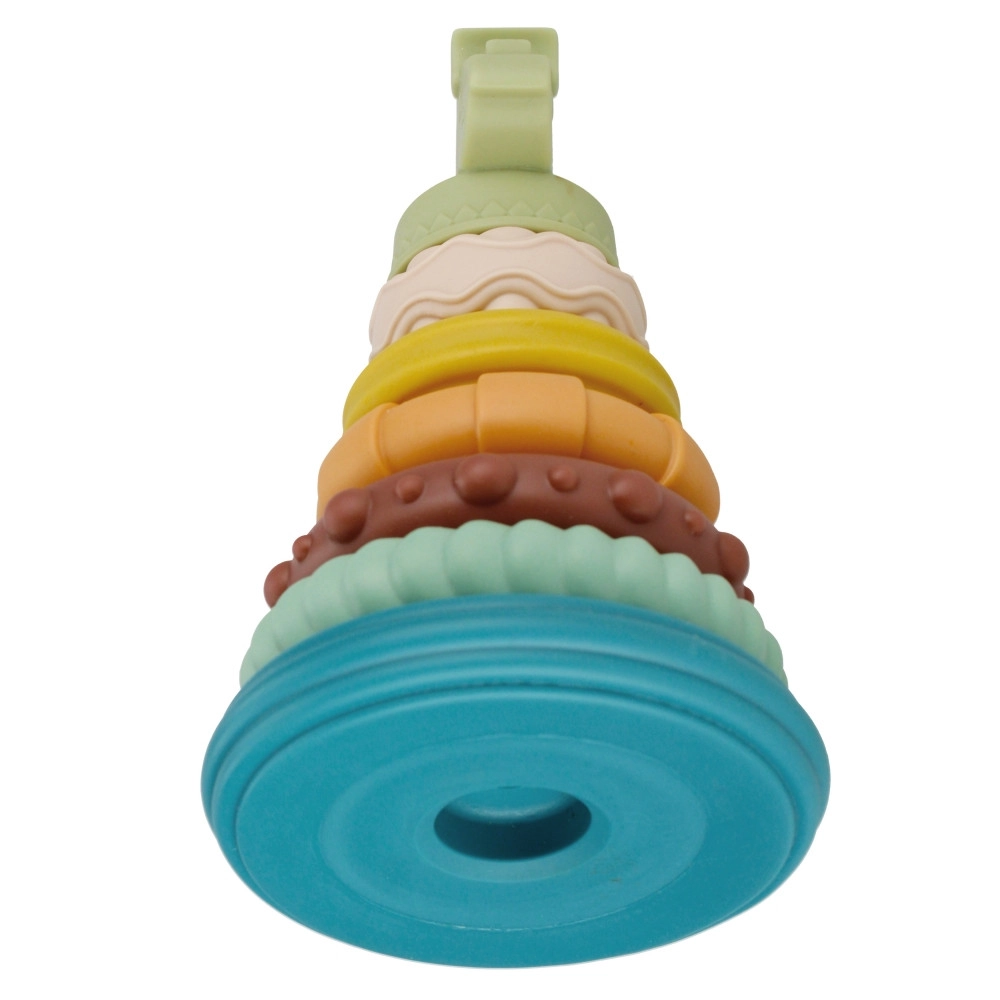 Jeder Ring hat eine andere Oberfläche – Rillen, Noppen und Wellen. Unterstützt die sensorische Wahrnehmung und das natürliche Erforschen mit Fingern und Mund.