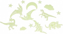 Verwandeln Sie das Kinderzimmer in eine zauberhafte Dinowelt. Die leuchtenden Aufkleber haften leicht auf glatten Oberflächen und geben nach Lichteinwirkung im Dunkeln ein angenehmes Leuchten ab. Ideal als Deko über dem Bett, am Schreibtisch oder auf Türen.