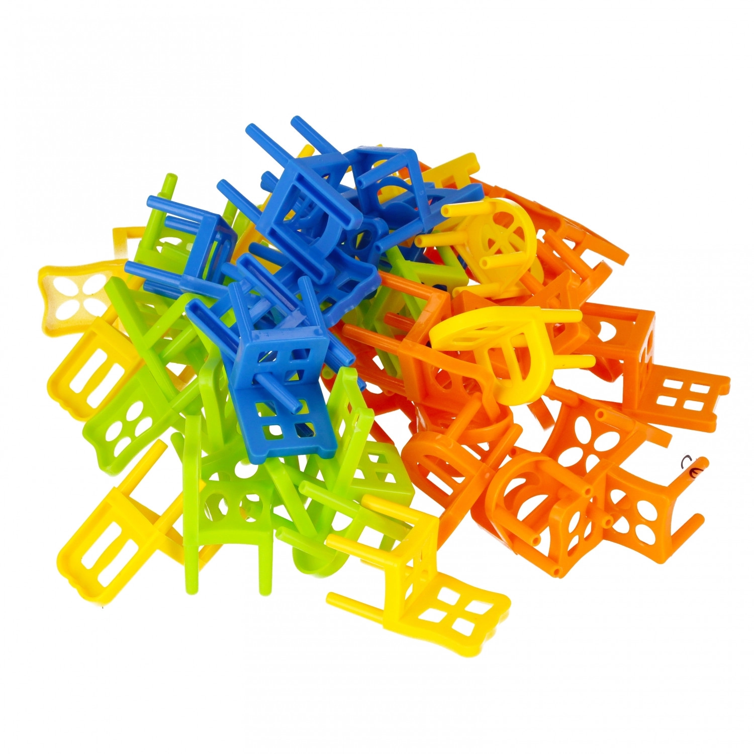 Baue deinen eigenen Stuhlturm und teste deine Geschicklichkeit! Das Stuhlspiel ist leicht zu verstehen, aber bei jedem Zug spannend. Jeder Spieler fügt der Konstruktion ein Stühlchen hinzu und versucht, den Turm im Gleichgewicht zu halten. Gewinnt, wer die Balance am längsten bewahrt.