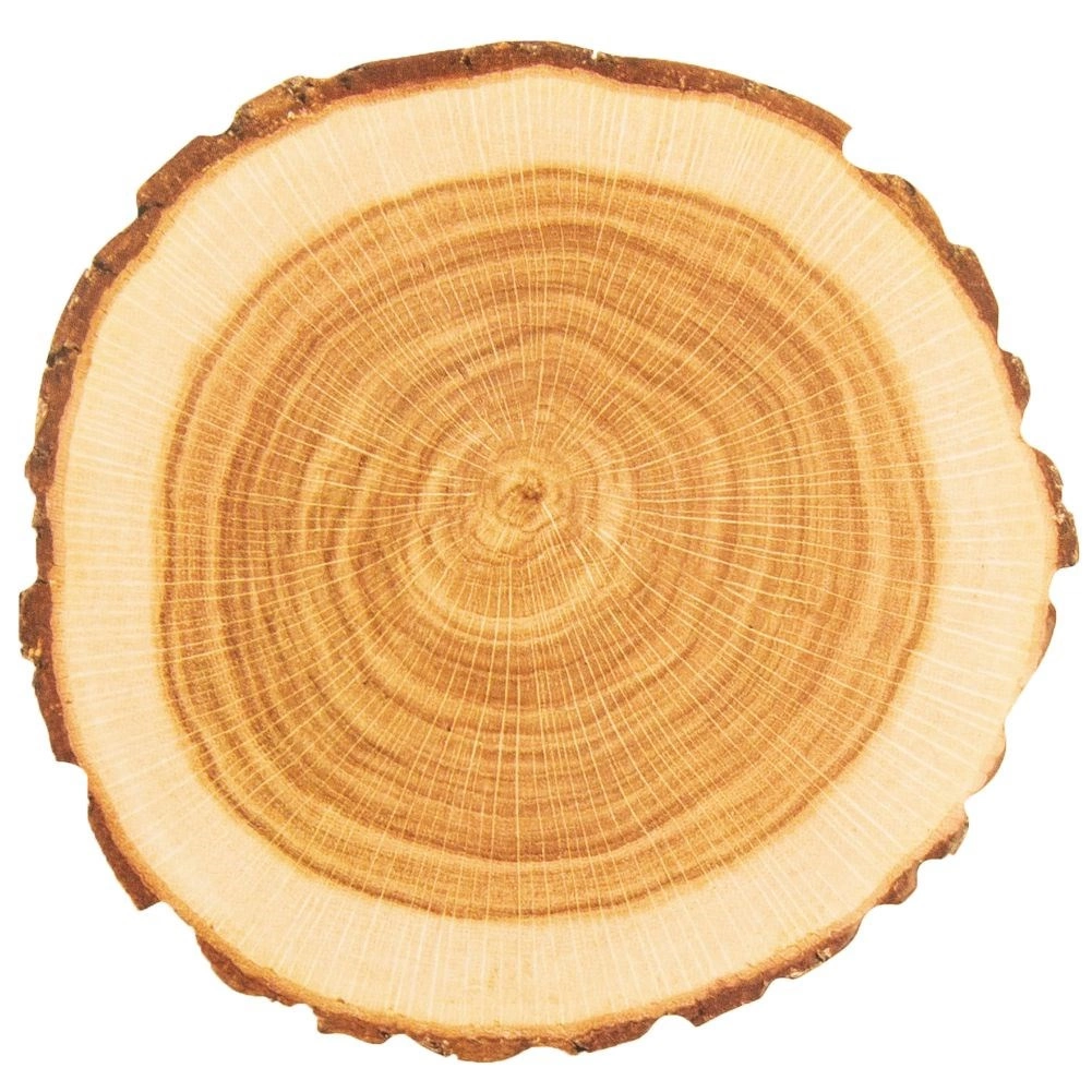 Realistische Jahresringe und ein rustikaler Rand verleihen dem Tischdecken eine gemütliche, natürliche Atmosphäre – ganz ohne echtes Holz.