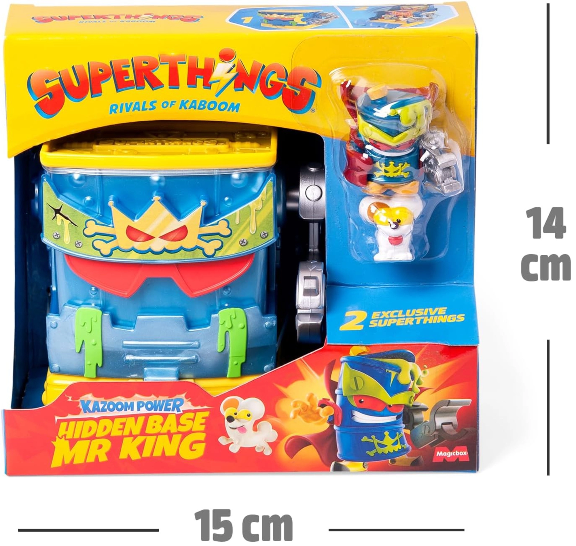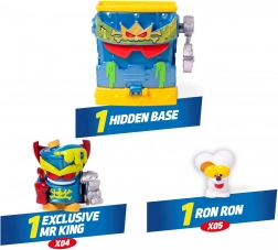 Überliste die Verteidigungsmechanismen, sammle wertvolle Kazoom-Energiekapseln und werde zum Helden von Kaboom City. Die Geheimbasis von MR KING ist voller Überraschungen – dreh- und verschiebbare Paneele, falsche Türen und clevere Fallen testen deine Schnelligkeit und deinen Einfallsreichtum. Das Set ist ideal für das Solospiel oder den Wettkampf zu zweit.