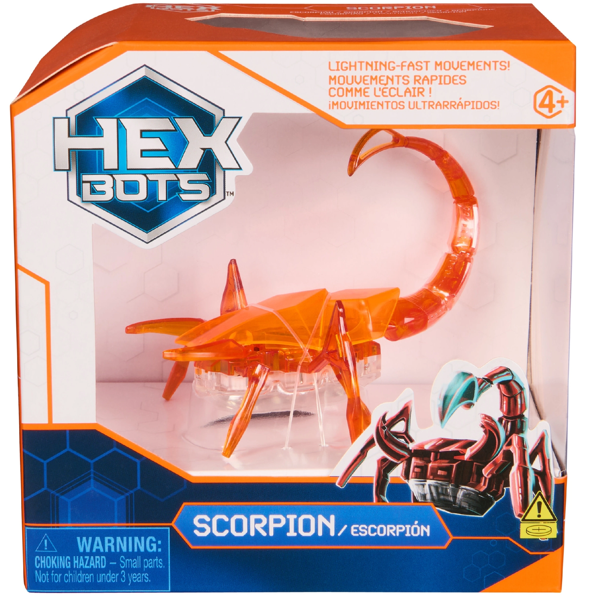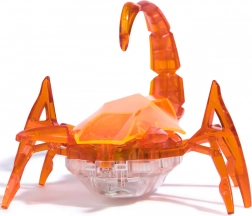 Der orangefarbene HEX BOTS Skorpion ist eine auffällige robotische Figur mit transparentem Gehäuse, die mit dynamischer Bewegung und Lichteffekten begeistert. Der Vibrationsmechanismus bewegt seine vielen Beine, sodass er sich geschickt fortbewegt, die Richtung wechselt, gegen Wände stößt und sich unterhaltsam überschlägt. Der leuchtende Schwanz sorgt für eine eindrucksvolle visuelle Show.