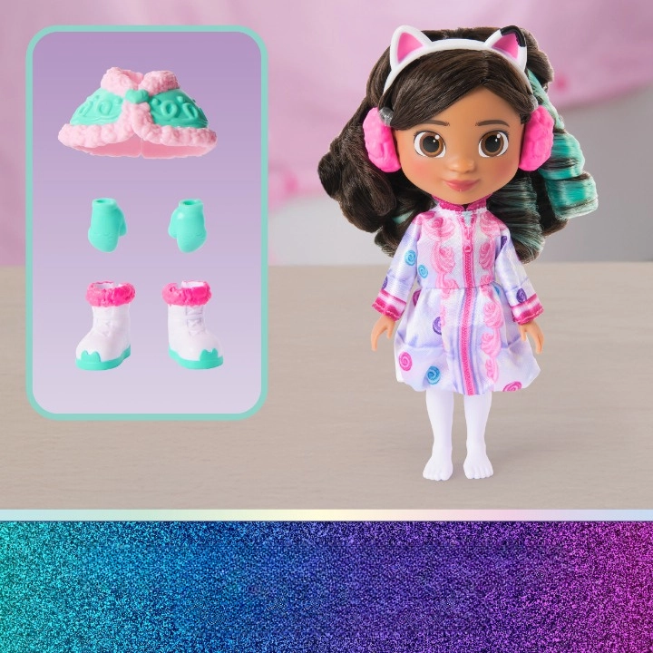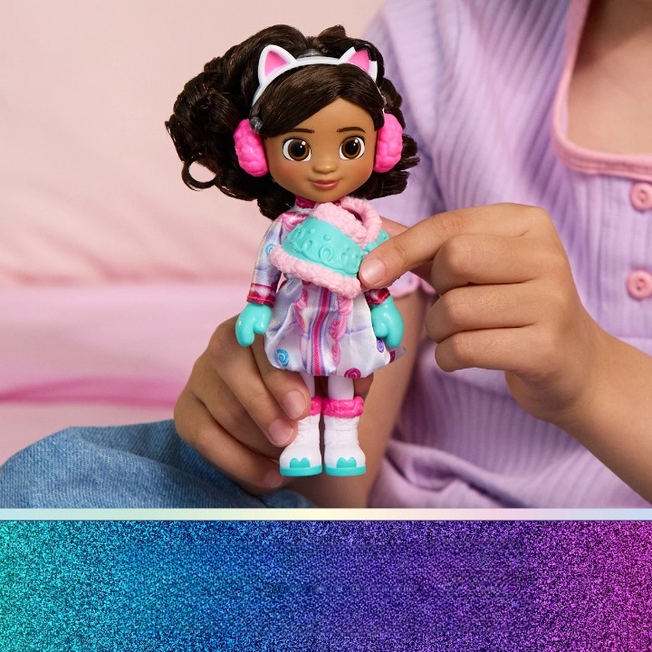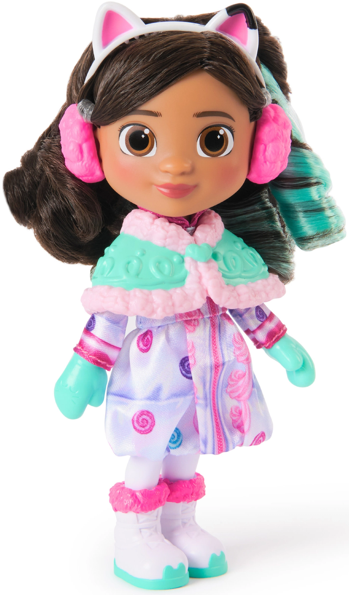 Diese lizenzierte Puppe, inspiriert von der beliebten Serie GABBYs Katzenhaus (Gabby's Dollhouse) von Spin Master, bietet Kindern stundenlangen kreativen Spielspaß. Gabby hat braune lockige Haare, braune Augen und ein stylisches Outfit – eine lange zuckersüße Jacke und weiße Leggings, die sich mit den winterlichen Accessoires im Set kombinieren lassen.