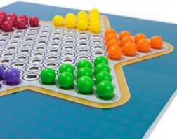 Der Schlüssel zum Sieg ist, alle eigenen Figuren so schnell wie möglich in die gegenüberliegende Spitze des sternförmigen Spielbretts zu bringen. Das Spiel fördert logisches Denken, Geduld und Zugplanung. Perfekt für Familienabende, Treffen mit Freunden und für unterwegs.