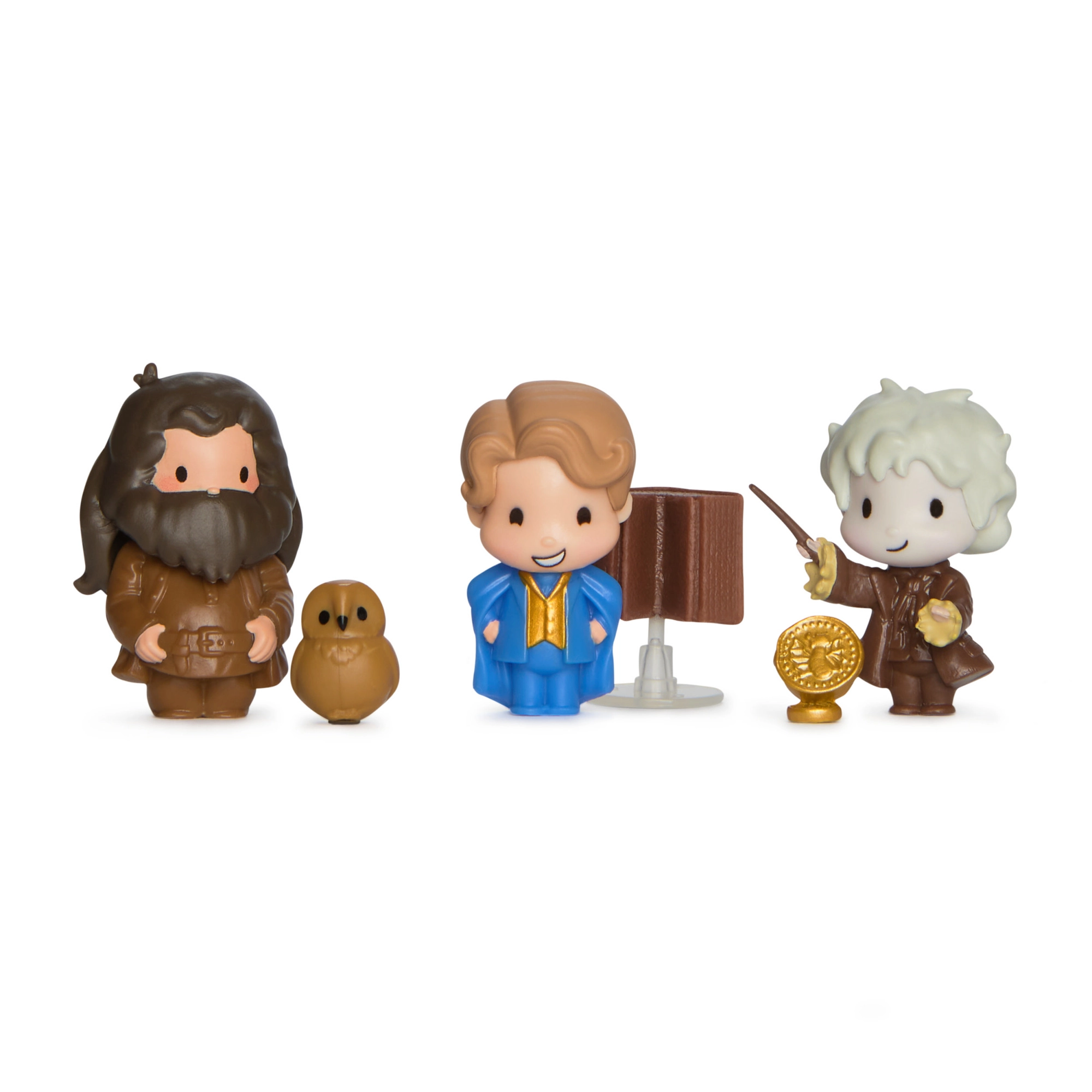 Die Figuren sind etwa 3,8 cm groß, sorgfältig bemalt und stehen hervorragend im Regal oder im Kinderzimmer. Zu den Überraschungen gehören unter anderem Charaktere wie Harry mit Leckereien aus Honeydukes, Professor Quirrell oder Arthur Weasley sowie magische Requisiten – ein Zauberbuch, ein Kessel oder Tränke. Bis zu 8 Figuren sind exklusiv nur in diesem Set enthalten.